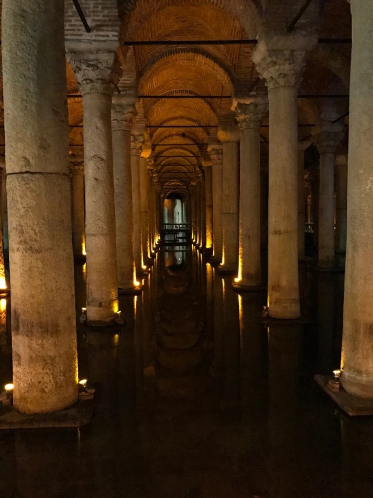 Fue una visita muy interesante, se trata de una cisterna de la época bizantina, donde se acumulaban las reservas de agua, por si la ciudad resultaba ser atacada. También se le llama el palacio sumergido y la verdad que es un sitio mágico. Hay música relajante que aporta mucha paz y tranquilidad a este lugar. Las más de 300 columnas crean pasillos que parecen infinitos. Muy recomendable para desestresarse del bullicio de la ciudad. No olvidéis ver las columnas con la cabeza de Medusa.