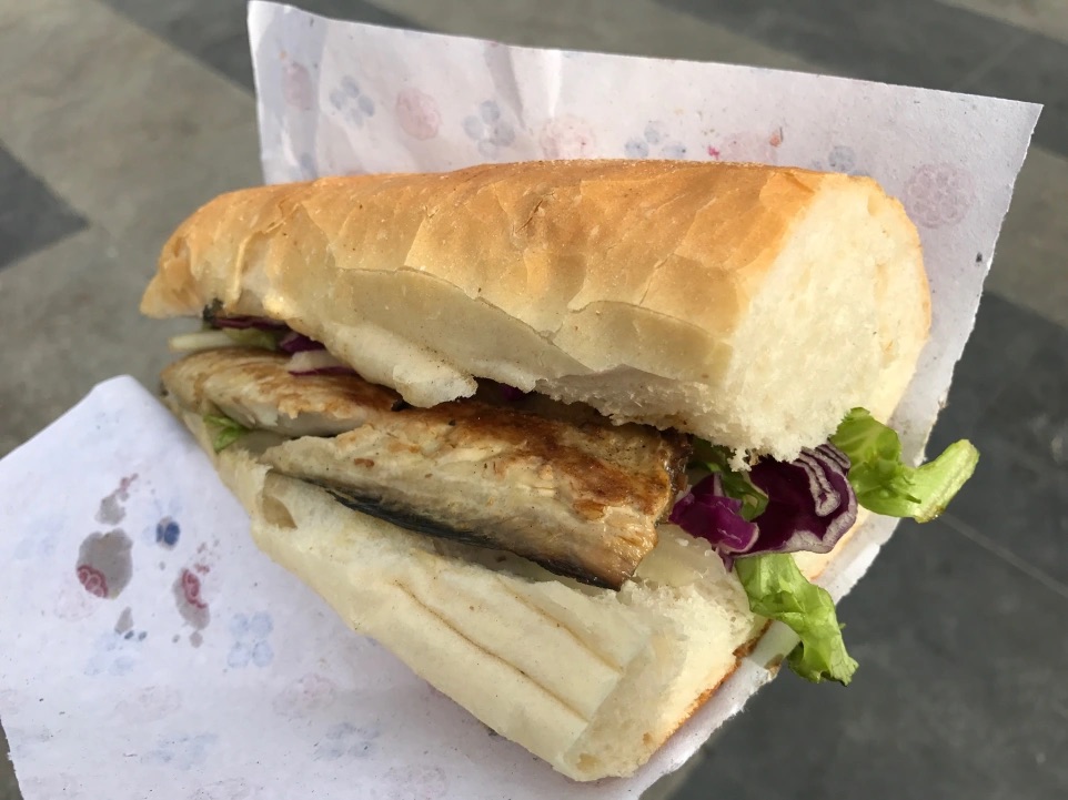 Uno de los lugares típicos en Estambul son los puestos de bocadillos de pescado ubicados en el muelle de Eminönü, destancando especialmente la caballa. Lo ponen en un trozo de pan junto con lechuga, cebolla y limón. ¡Muy ricos y por menos de 2€!
