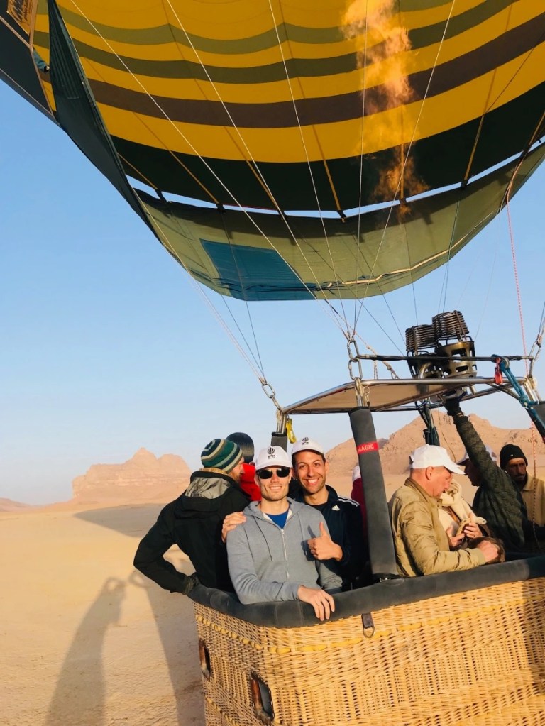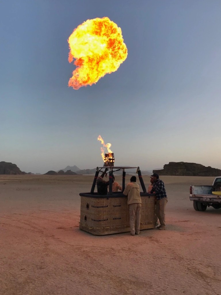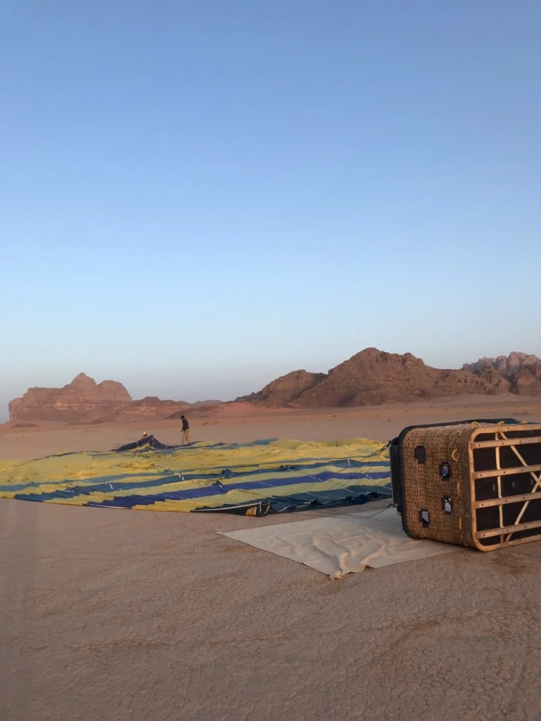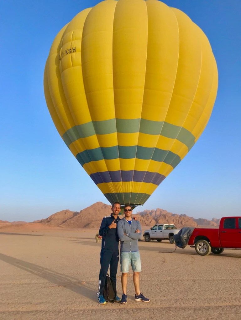 El viaje en globo dura alrededor de 1 hora y junto con los preparativos, el desayuno (al que os invitan al terminar) y el transporte, la experiencia se queda en unas 2 horas y media aproximadamente. En Wadi Rum tan solo hay una empresa que organiza estos paseos en globo por el momento. La verdad que son todos encantadores, empezando por el encargado y terminando por los que montan, preparan y recogen todo el material. El precio es de 180€ por persona y aquí os dejamos su contacto.