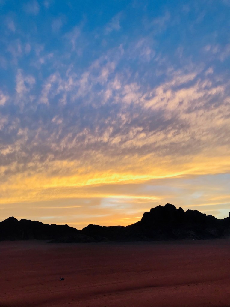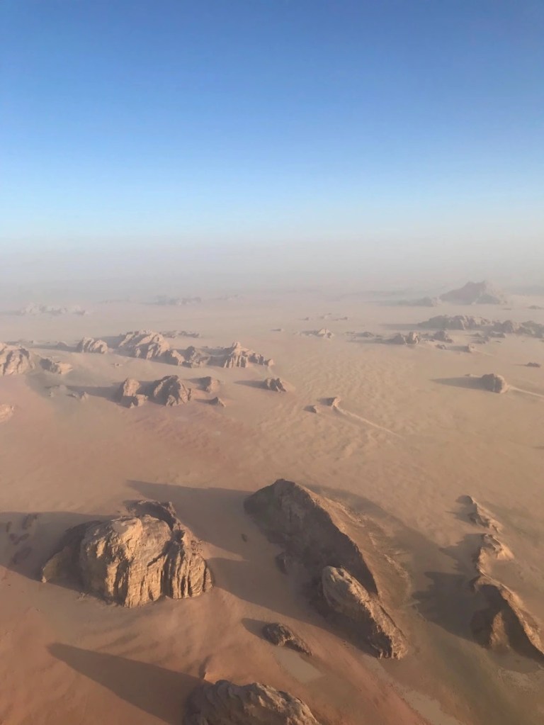 Y tras nuestra visita por la increíble Petra tocó poner rumbo a la siguiente parada situada a unos 115 km dirección sur, el imponente desierto de Wadi Rum. Se trata de un desierto de arena y piedra muy peculiar y que es uno de los más fascinantes del mundo. Nuestro paso por aquí fue de dos días y una noche. Dedicamos el primer día a hacer un recorrido por los puntos de interés de Wadi Rum y el segundo a dar un paseo en globo sobrevolando este impresionante y remoto lugar del planeta.