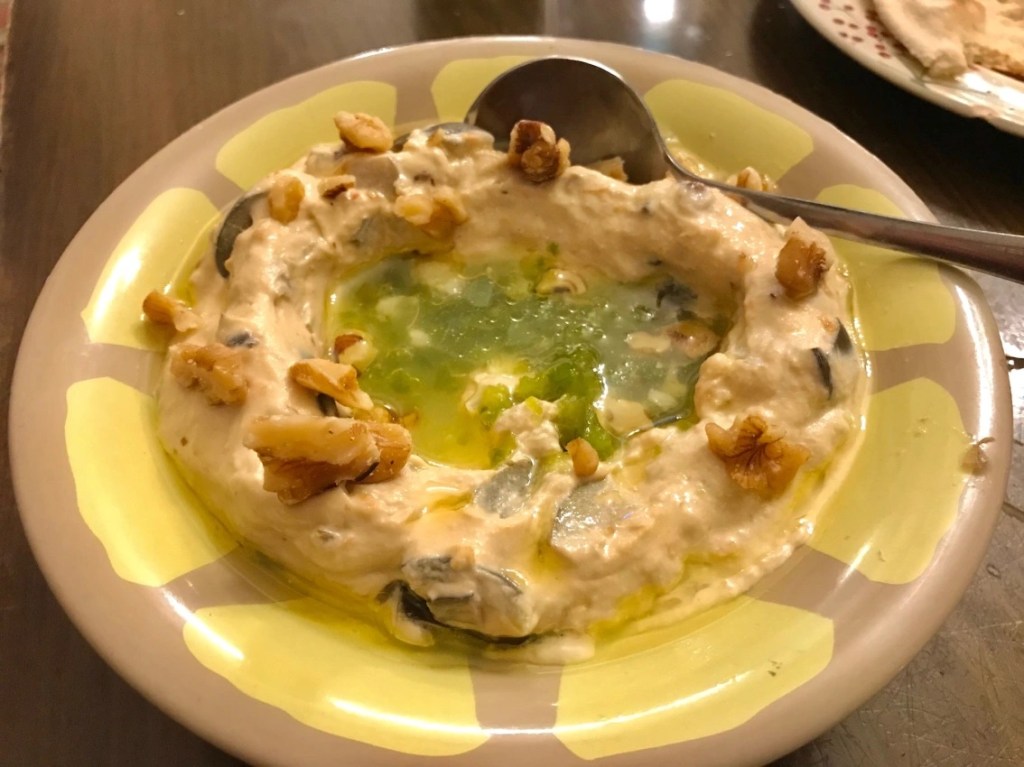 - Hummus Sufra: Hummus con berenjena y nueces. Parecido al Baba Ganoush pero mezclando la berenjena con el garbanzo y añadiéndole nueces.