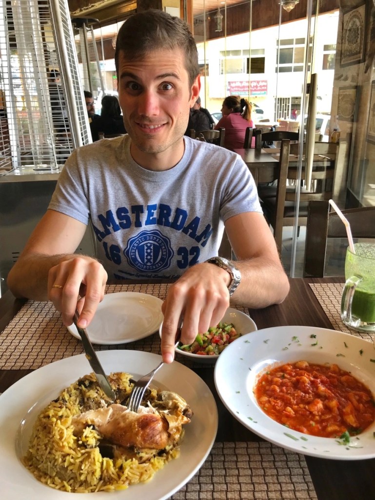 y una de las noches en Wadi Musa probamos el que podríamos decir que es el plato más típico de Jordania, de hecho está considerado el plato nacional: