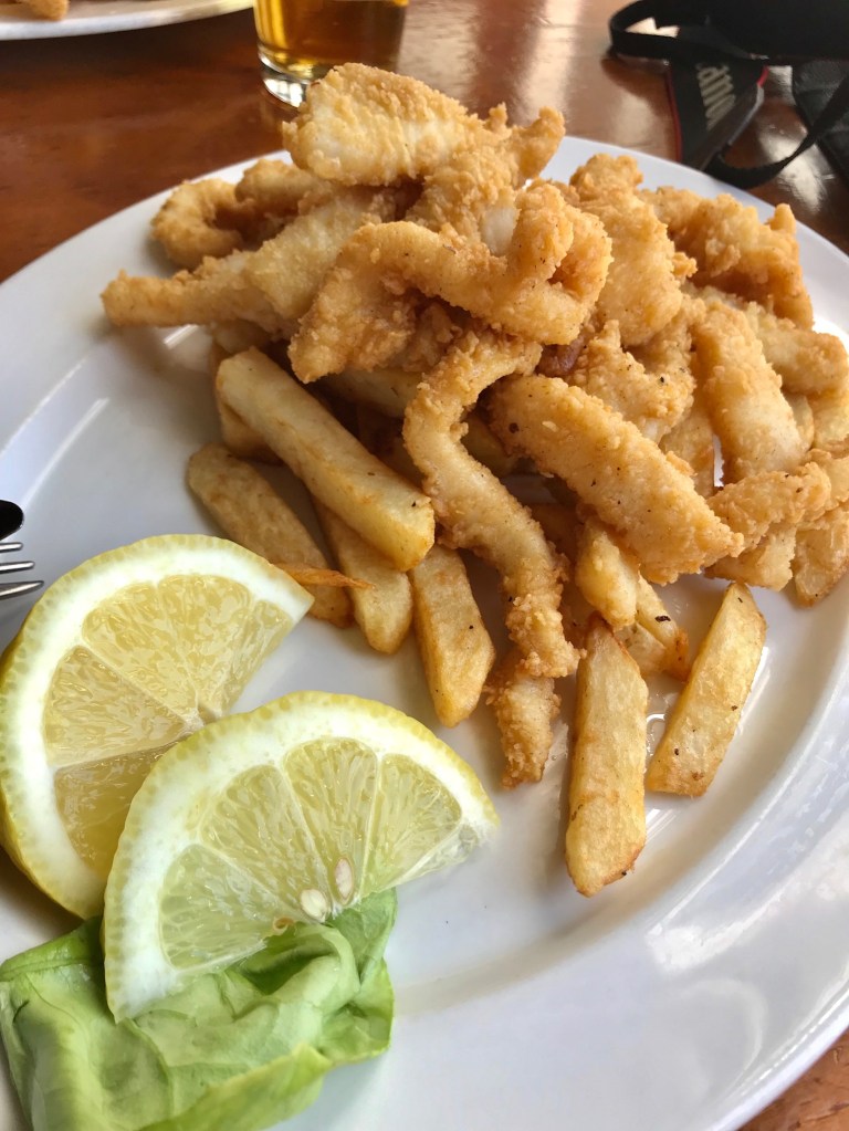 Una vez finalizada la actividad (2-3 horas) y con un hambre brutal entramos en un restaurante local del puerto de Hermanus (justo donde embarcamos) y que estaba hasta los topes de gente. Estaba bien posicionado en Tripadvisor y el pescado tenía muy buena pinta. Nosotros nos aventuramos a probar el Fish&Chips sudáfricano y la verdad que estaba bastante bueno.