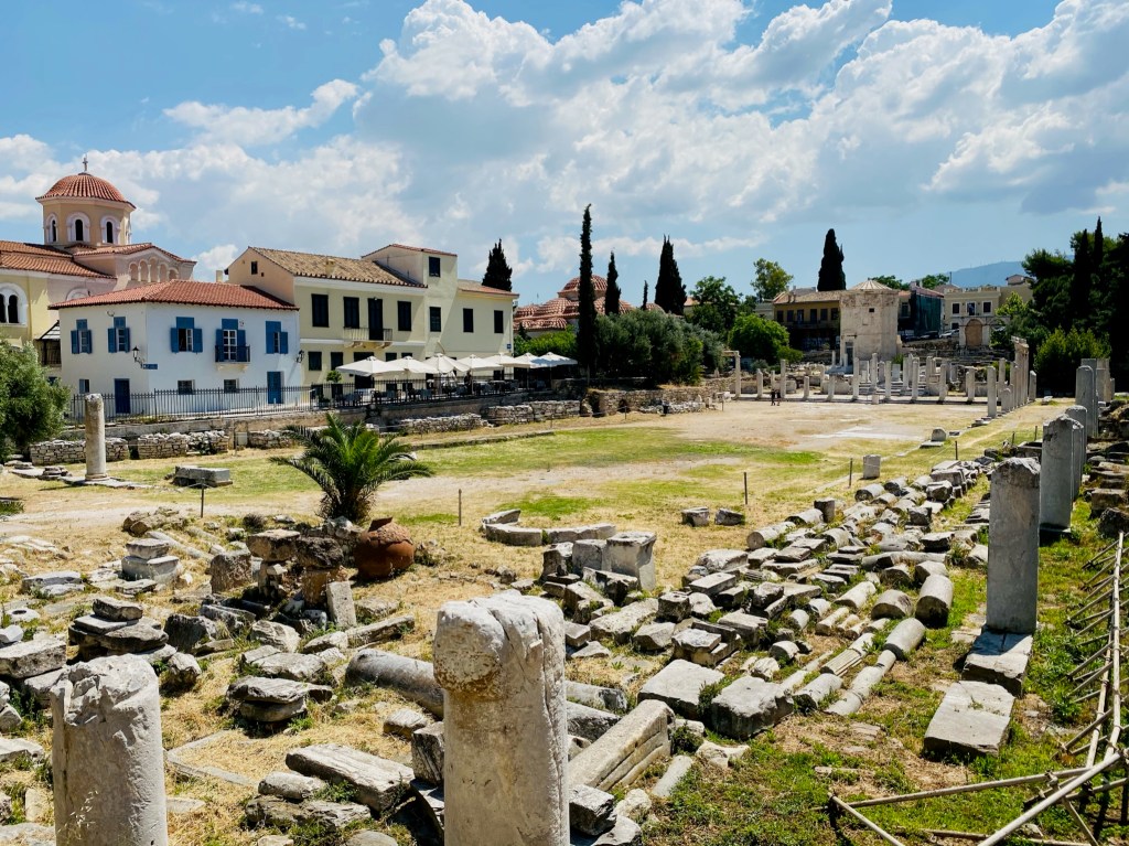 Dentro del Ágora romana hay varios monumentos de interés como por ejemplo la Biblioteca de Adriano, la Torre de los vientos o la Puerta de Atenea Arquegetis entre otros