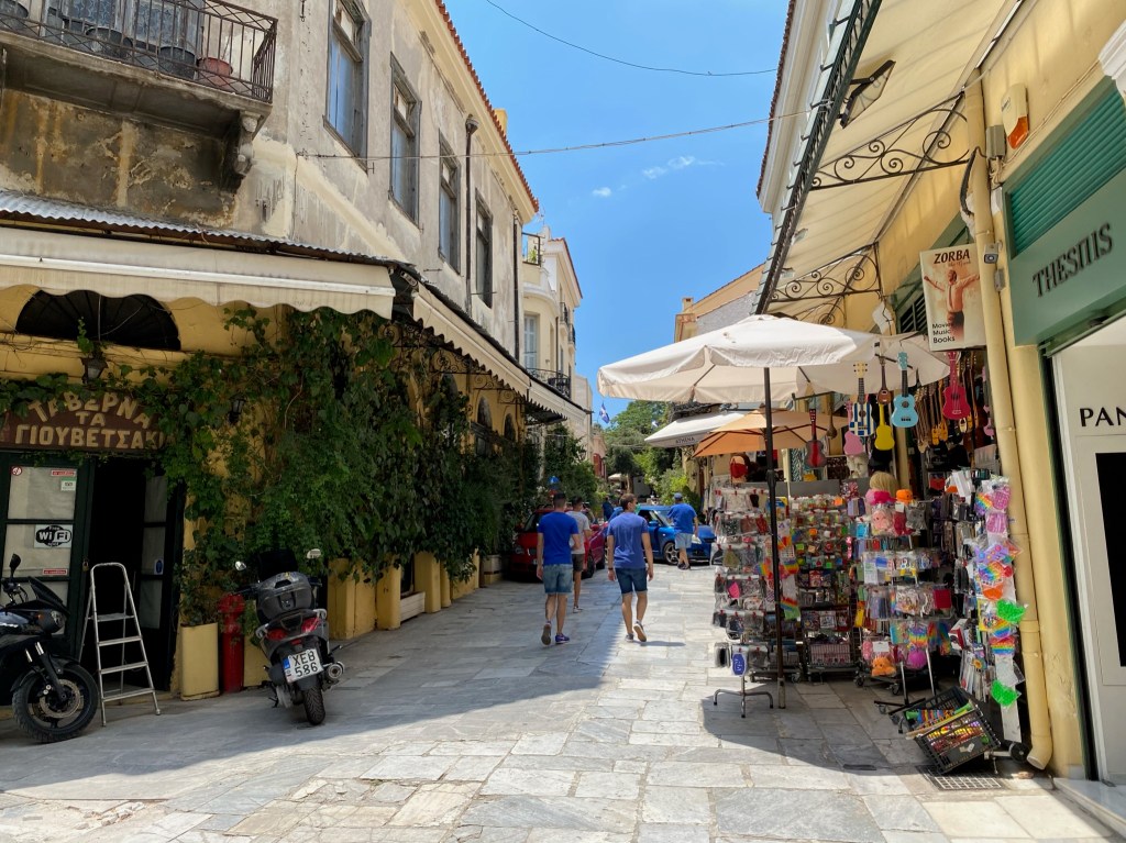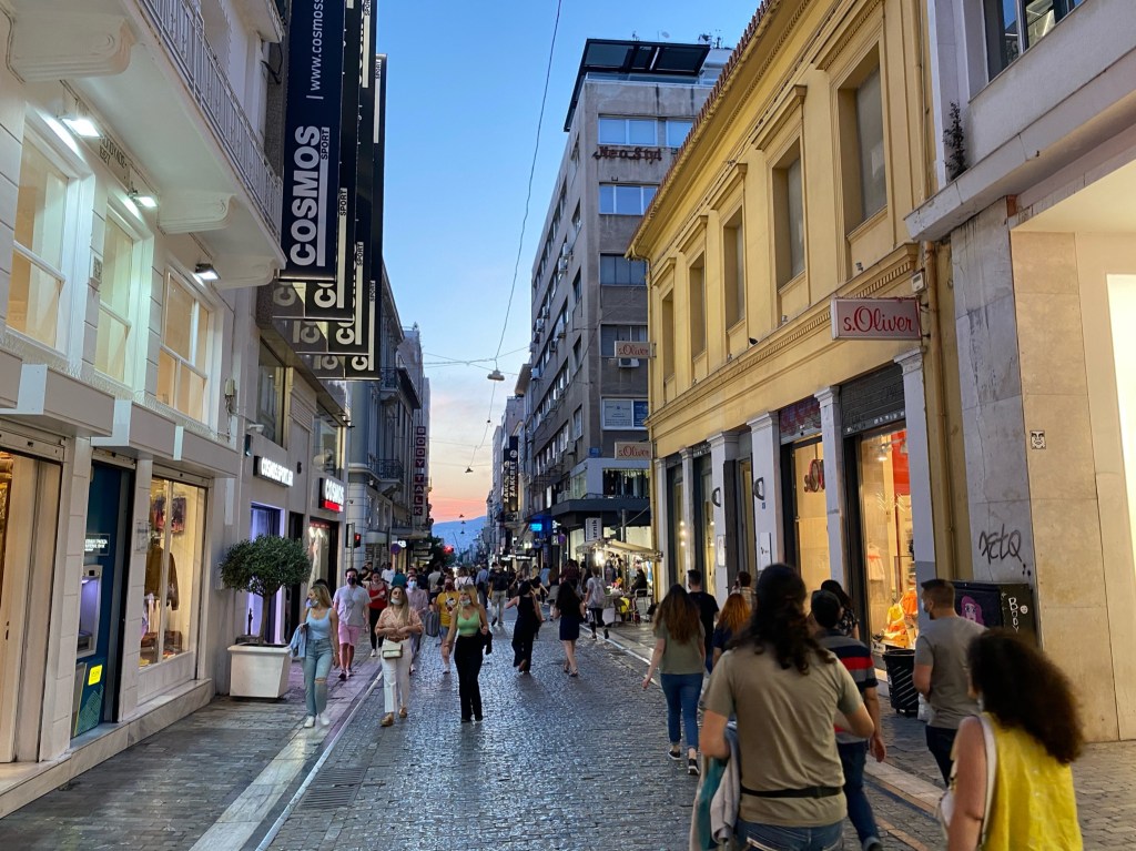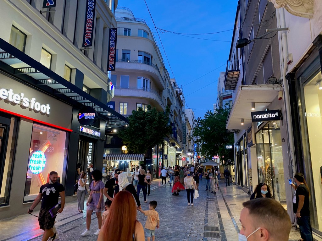 El barrio de Monastiraki sin embargo, es una zona más comercial que Plaka. Allí encontraréis un gran mercado con pequeñas calles repletas de negocios. Además, aquí se encuentra la calle comercial más famosa de Atenas, Calle ERMOU, se trata de un calle que se extiende a lo largo de un kilómetro y medio y que está repleta de toda clase de tiendas y negocios que harán las delicias de los más consumistas.
