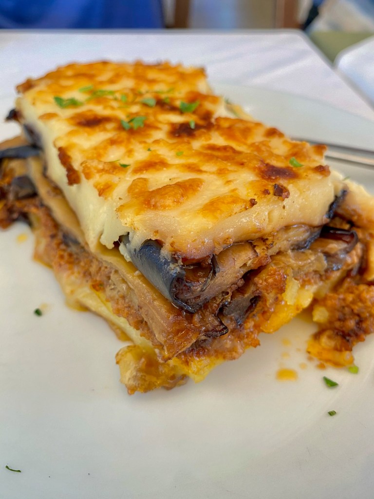 | Consejo: Uno de los restaurantes que recomiendo probar en Atenas es el restaurante Liondi ubicado a escasos metros de la entrada al museo de la Acrópolis. El precio es muy asequible y los platos típicos griegos están riquísimos. Y si hay por ahí algún vegano, el restaurante Veganaki es famoso no solo entre los veganos sino también entre el resto ya que tiene unos platos de lo más sabrosos y sin un gramo de carne. Un gran acierto sin duda, aunque el restaurante es muy pequeñito. La Mousaka de lenteja roja espectacular! |