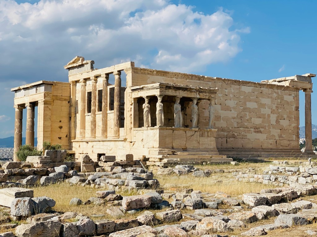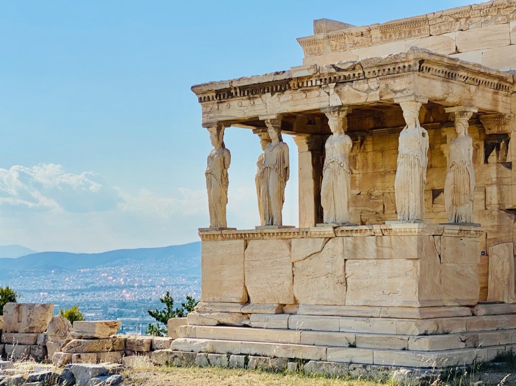 Es quizás la parte más conocida de toda la ciudad. La Acrópolis (o ciudad alta) está situada en lo alto de una cima y en sus orígenes tenía una doble función: defensiva y sede de los principales lugares de culto. En la Acrópolis ateniense los principales monumentos que se encuentran son: Los Propíleos (justo la zona de acceso), el templo de Atenea Niké (a la derecha de los Propíleos) y luego un poco más adelante encontraréis el famoso Partenón y el Erecteion, con sus características columnas con forma de mujer, las Cariátides.