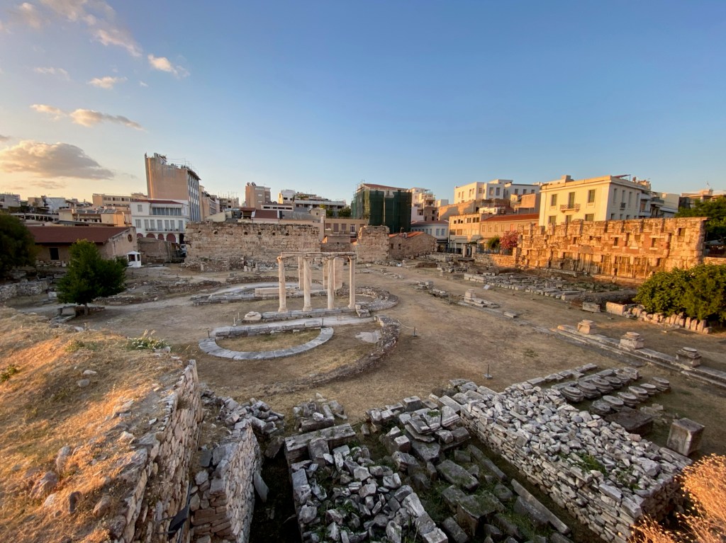 Otro gran lugar de interés en Atenas es visitar ya abajo en la ciudad, el Ágora. Se trataba de la zona donde se solían reunir los ciudadanos de la ciudad de Atenas y sede de al actividad social, comercial, política y administrativa. Se pueden visitar dos Ágoras: el Ágora Helenística (o Ágora antigua) y el Ágora Romana (también llamado foro romano).
