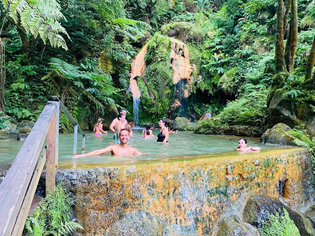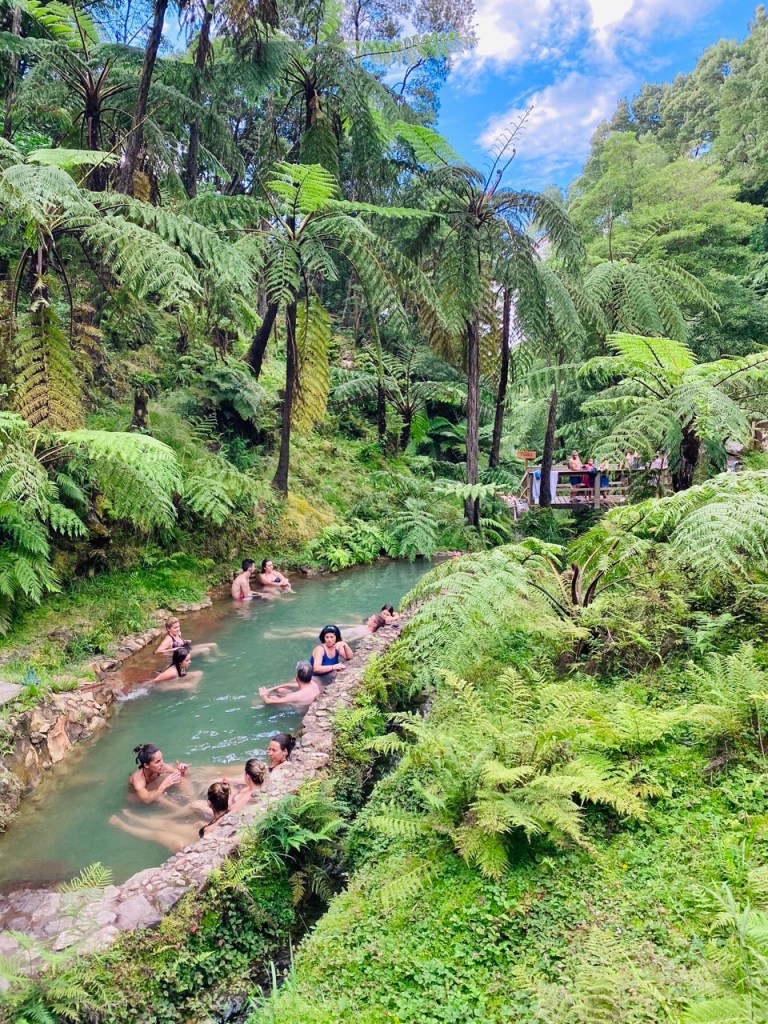 Hemos visto que en la isla hay fumarolas y calderas naturales como las de Furnas pero también hay otras calderas que forman piscinas naturales en las que está permitido el baño (ya que las temperaturas no superan los 38 grados) y que es una de las experiencias que hay que vivir en las Azores. En total hay 3 en la isla de San Miguel, además de las pisicinas del parque Terra Nostra hay otras dos: Caldeira Velha (cerca de la Lagoa do Fogo) y la Poça de Dona Beija (cerca de Furnas).