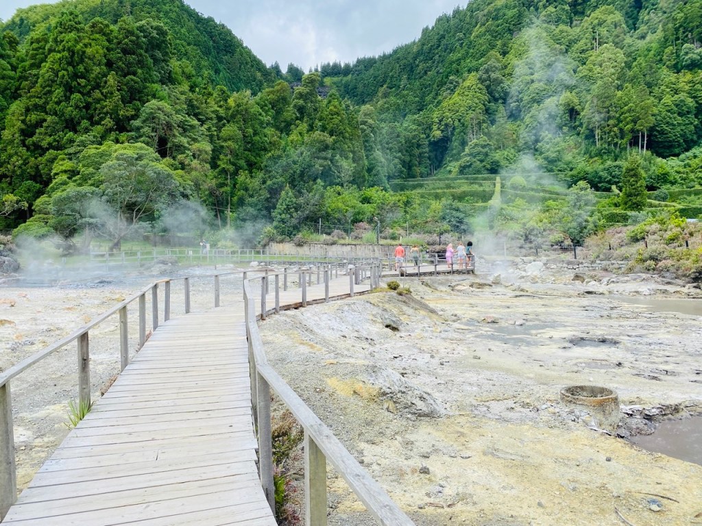 Ya que las de pago son solo 3 € nosotros recomendamos visitar las dos. En estas de pago podréis seguir viendo impresionantes fumarolas y calderas en plena ebullición. Además en esta zona veréis como se cocina el plato más famoso de las islas Azores: el cocido das Furnas. Se trata de un cocido similar al que hacemos en España y que se hace con el calor natural del volcán durante 6-8 horas a través de agujeros excavados en las inmediaciones de las calderas.