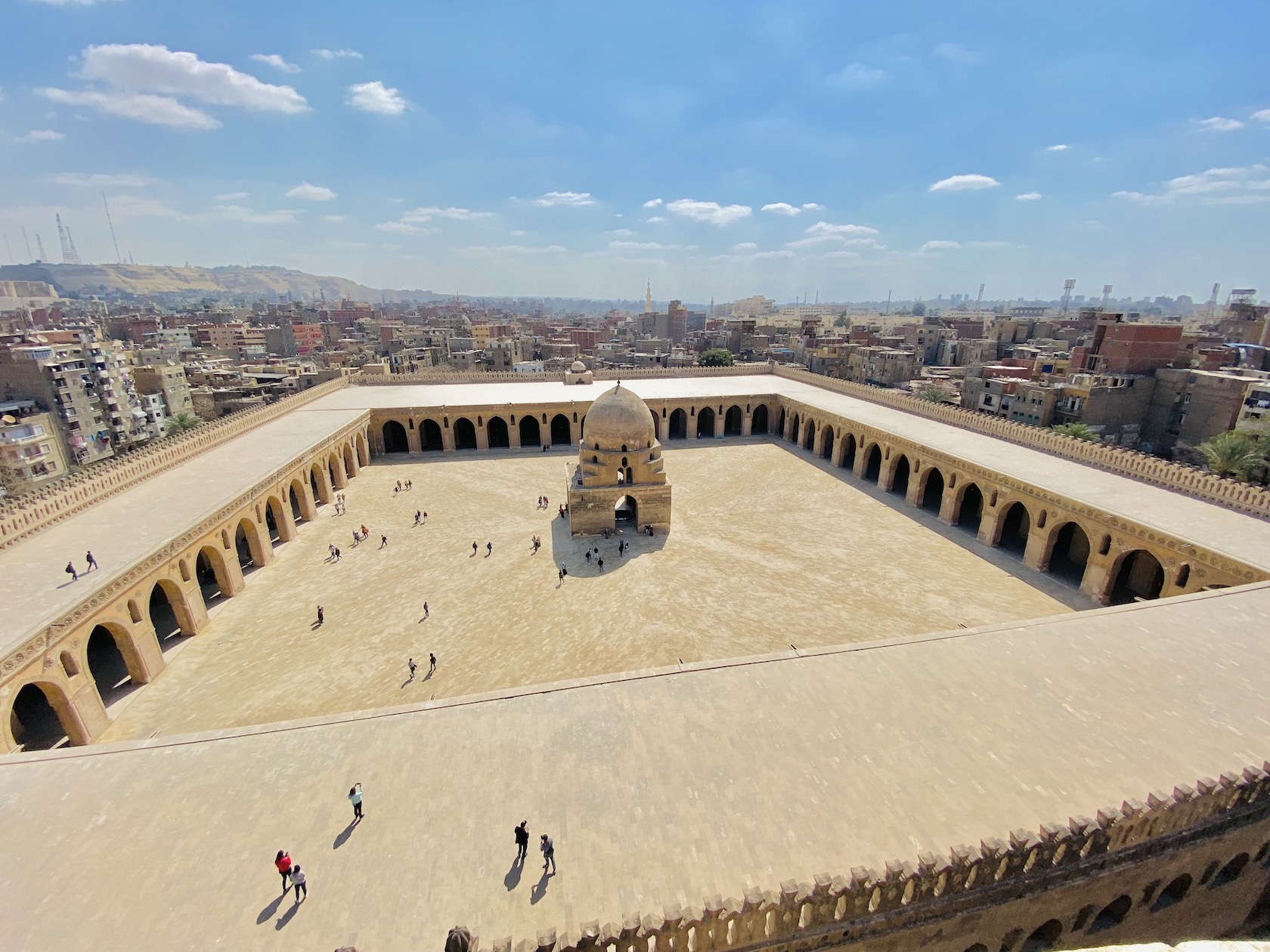 Tras pasar en torno a 1 hora y media en la ciudadela pusimos rumbo a la mezquita más grande de todo el Cairo además de la más antigua, la mezquita de Ibn Tulun. Con una arquitectura espectacular, esta mezquita data del 827 d.C y merece la pena visitarla además de subir a su minarete único para ver las vistas de la mezquita y de la ciudad.