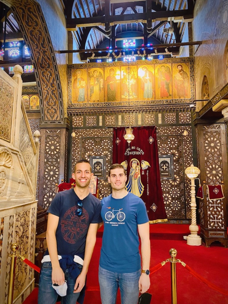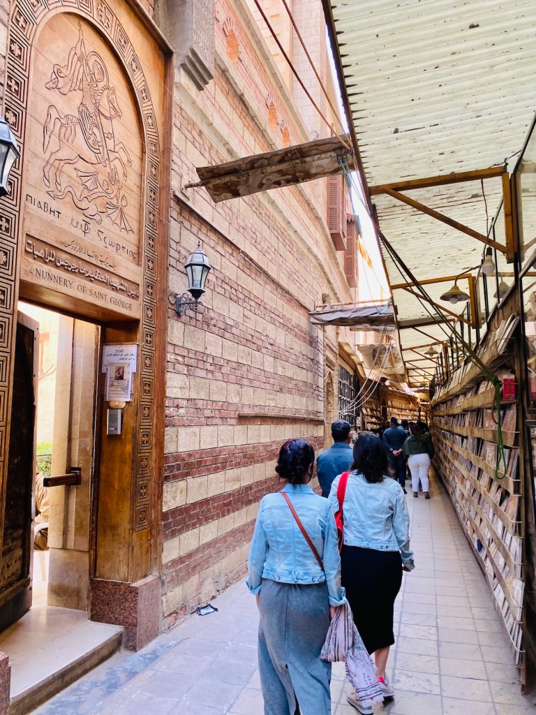 Después nos dirigimos hacia el Barrio Copto, el último reducto cristiano que queda en El Cairo. Menos del 10% de la población de El Cairo es cristiana, por lo que en este barrio se encuentra la única zona católica de la ciudad. En el barrio copto de El Cairo no os podéis perder, la iglesia de Santa María (también llamada iglesia colgante por estar sobre las antiguas murallas de la fortaleza de Babilonia), la iglesia de San Jorge y la sinagoga de Ben Ezra.