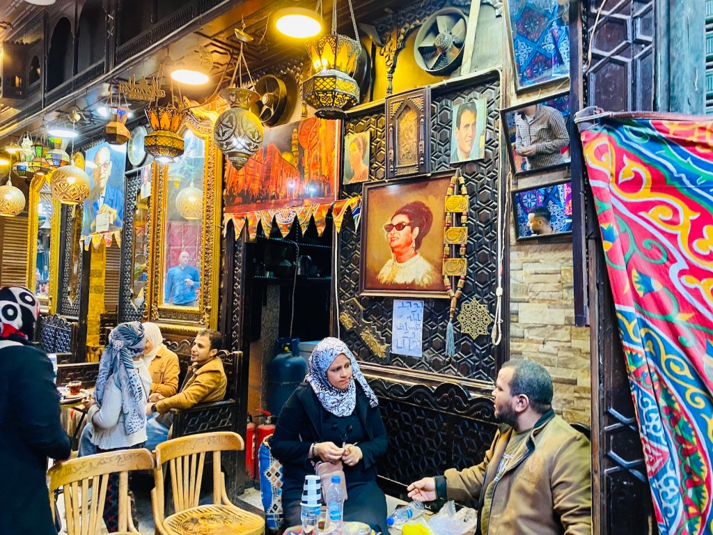 La verdad que pasear por estas calles puede resultar algo agobiante ya que los comerciantes no pararán de deciros que entréis a sus tiendas, os ofrecerán constantemente cosas… más o menos lo que ocurre en otros países como Marruecos, Túnez… así que paciencia y si os agobian mucho pasad olímpicamente de ellos y listo, os dejarán tranquilos. En una de las bulliciosas calles de este bazar está el famoso Café el Fishawy también conocido como el café de los espejos que con más de 200 años de historia podríamos decir que es la cafetería más famosa de El Cairo. Además, al lado de una de las entradas al bazar se encuentra la famosa mezquita de Al-Azhar, que aunque es más moderna también se puede visitar y es muy bonita.