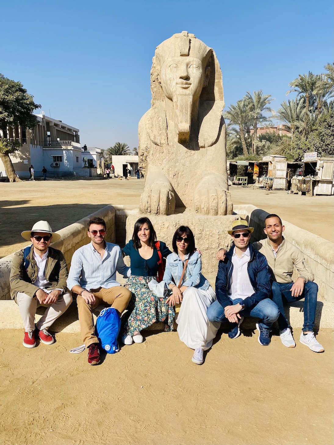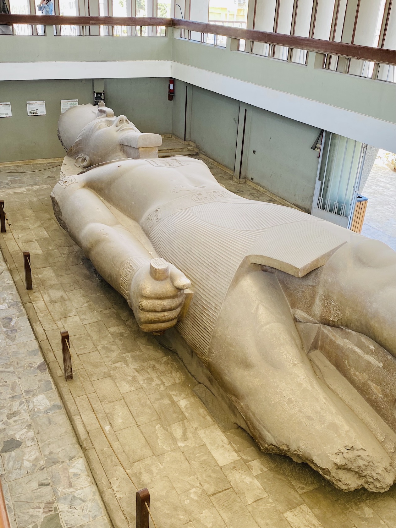 Nuestro primer día comenzó con la visita a Menfis, capital del Imperio antiguo de Egipto. Fue la primera capital que hubo en Egipto y se cree que fue la ciudad más poblada del mundo hasta el 2.250 a.C. Lo más popular aquí es visitar brevemente el museo al aire libre de Menfis donde hay una escultura monumental del faraón Ramsés II así como una esfinge de alabastro y las ruinas del antiguo templo de Ptah entre otros.