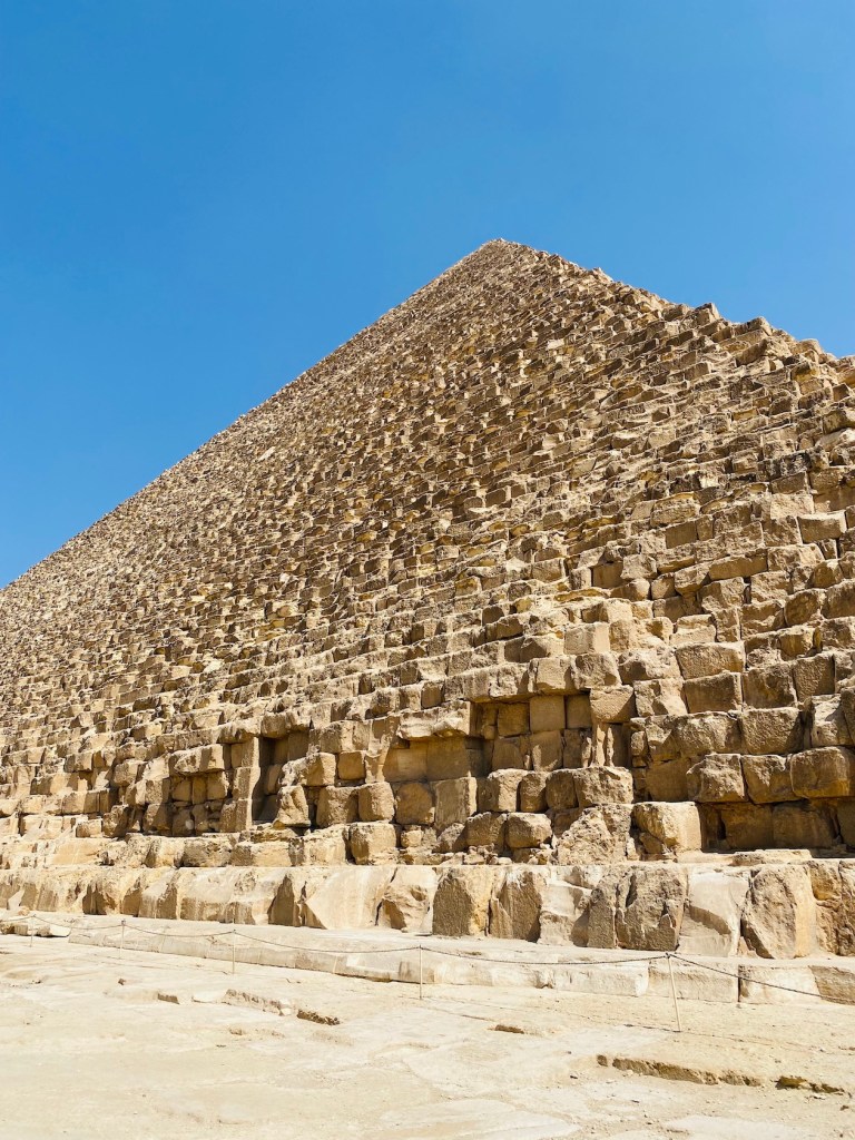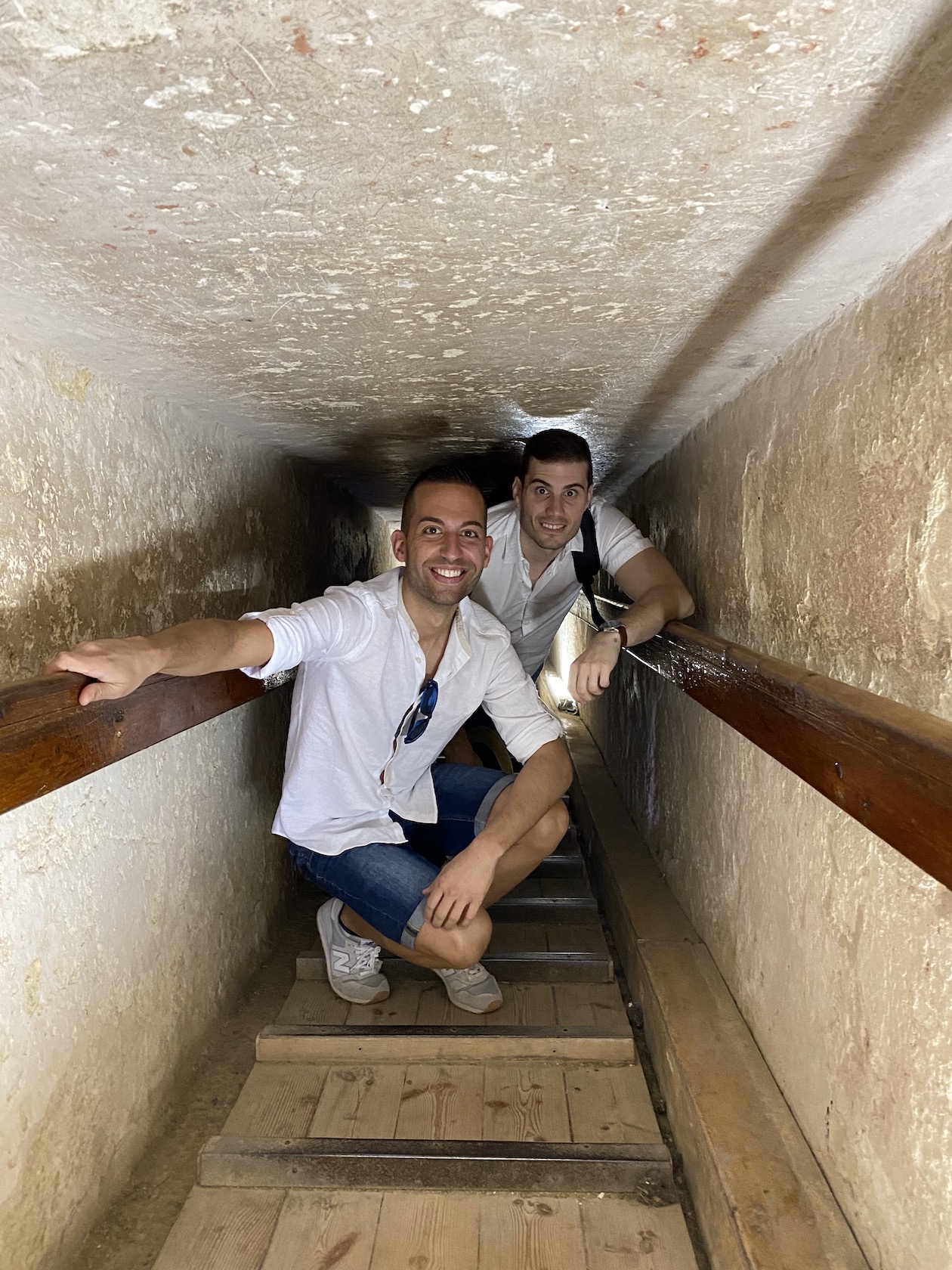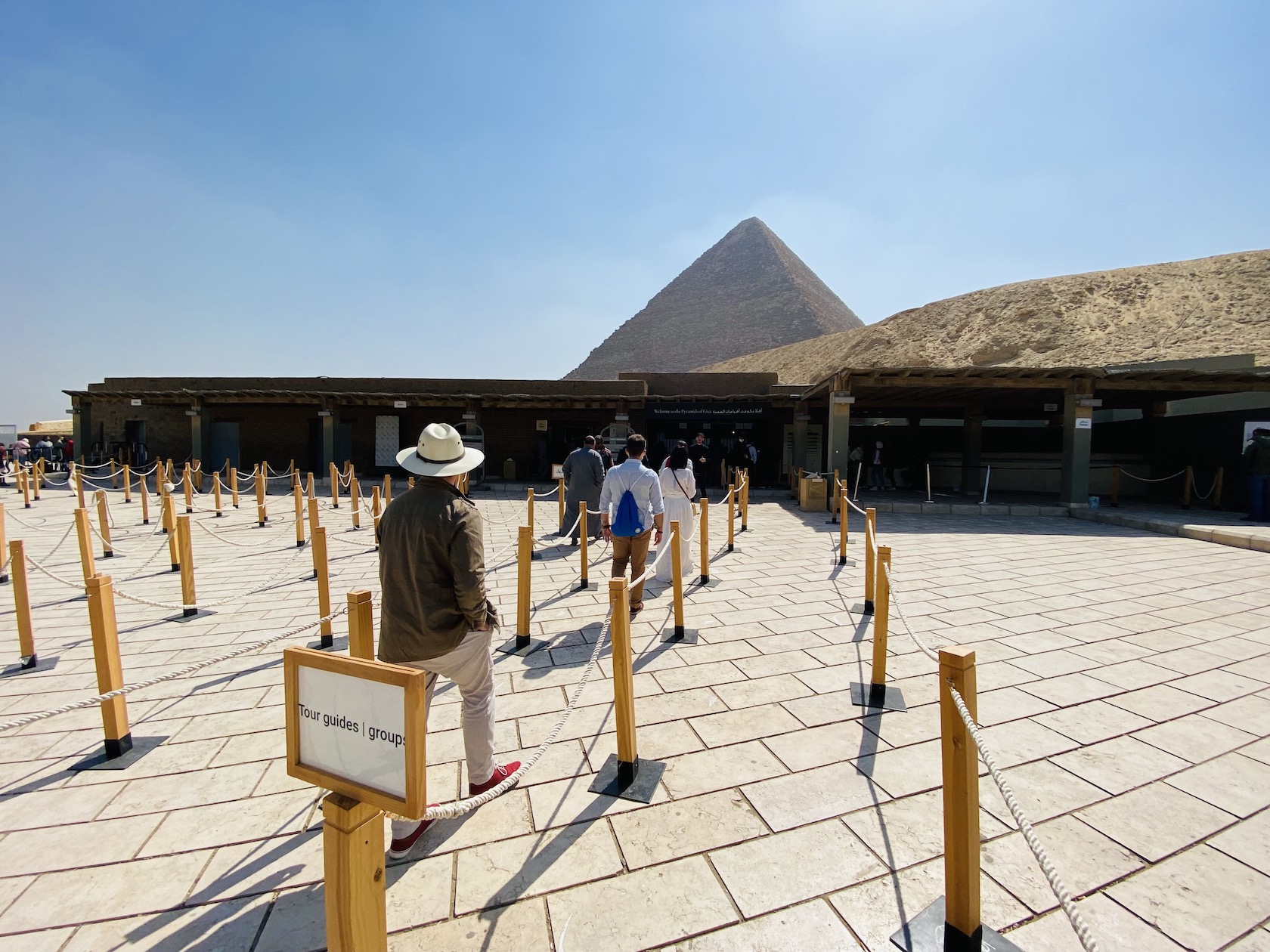 Este recinto es mucho más grande que el de Saqqara, cuidado si vais en los meses más calurosos, llevaros protección solar, agua y gorra o sombrero. La entrada no incluye las cámaras funerarias por lo que hay que pagarlas a parte. La más cara es la de la Gran Pirámide de Keops con un precio de 400 EGP – 20€, y que merece mucho la pena. Nosotros entramos también a la de Kefrén por 100 EGP – 5€. Justo enfrente de esta pirámide se encuentra la famosa esfinge, una auténtica pasada!