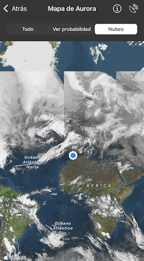 Hay que tener en cuenta que no siempre es preciso y la aplicación tiene también sus fallos. Además tened en cuenta como hemos dicho la meteorología ya que si el día está nublado será casi imposible verlas, tiene que estar despejado o poco nublado. En la aplicación también tenéis información de la nubosidad en tiempo real.