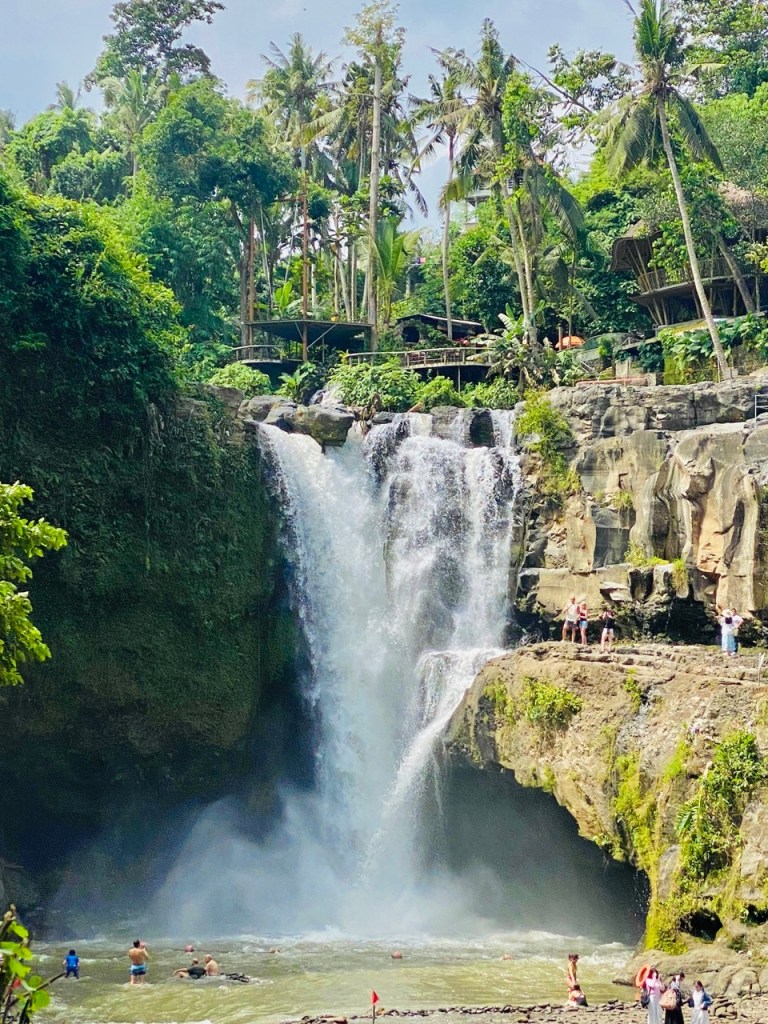 Una vez vistas las plantaciones nos dirigimos hasta las Tegenungan Waterfalls, unas famosas cascadas de Bali rodeadas de un ambiente selvático y donde os podéis bañar, aunque el agua deja mucho que desear… El precio es de 2€ aproximadamente y para llegar a la cascada hay que descender unas 170 escaleras.