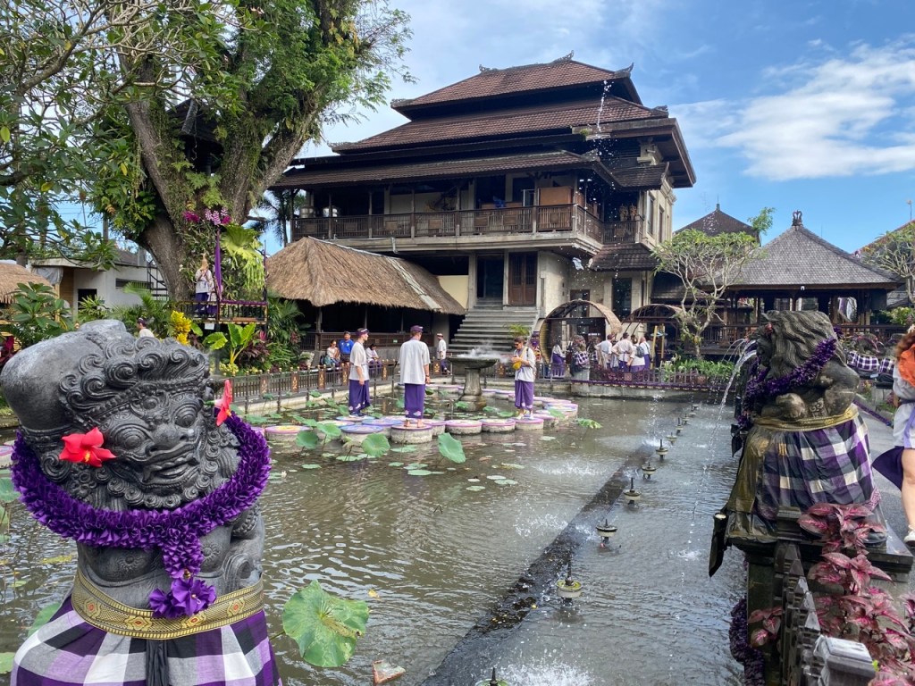 Tras las cascadas llegamos al famoso Palacio Real de Ubud, conocido como Puri Saren Agung. Se trata de uno de los lugares más emblemáticos del centro de Ubud y un importante punto cultural de Bali. Fue la residencia oficial de la familia real de Ubud y aún hoy parte de la familia vive allí.