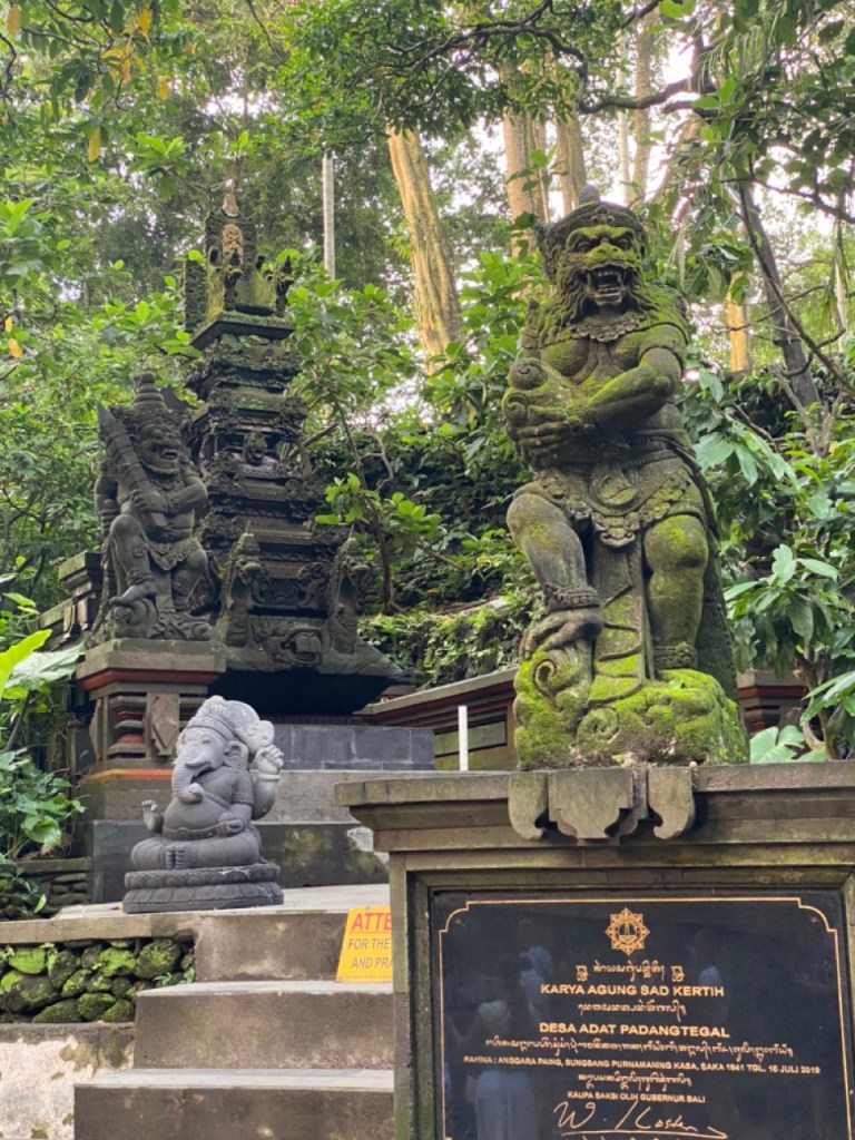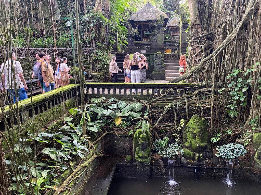 Y por último pusimos rumbo al Monkey forest, uno de los lugares más visitados de la zona y un icono turístico de Bali. Es un extenso santuario natural y espiritual, hogar de más de 1.200 macacos de cola larga que viven en libertad entre antiguos templos hindúes, esculturas cubiertas de musgo y una densa selva tropical.