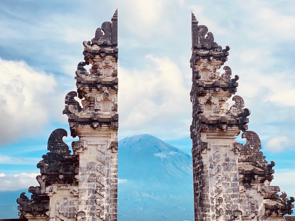Tras un largo recorrido en coche, llegamos al Templo Pura Lempuyang, uno de los templos más sagrados y antiguos de Bali, ubicado en la ladera del monte Lempuyang, al este de la isla. Este templo alberga la famosa «Puerta del Cielo», desde donde, en días despejados, se obtiene una vista espectacular del volcán Agung enmarcado entre los pilares del templo.