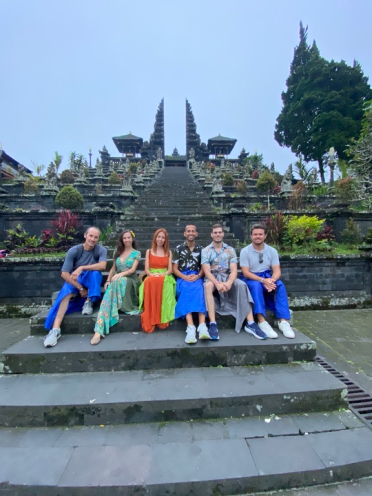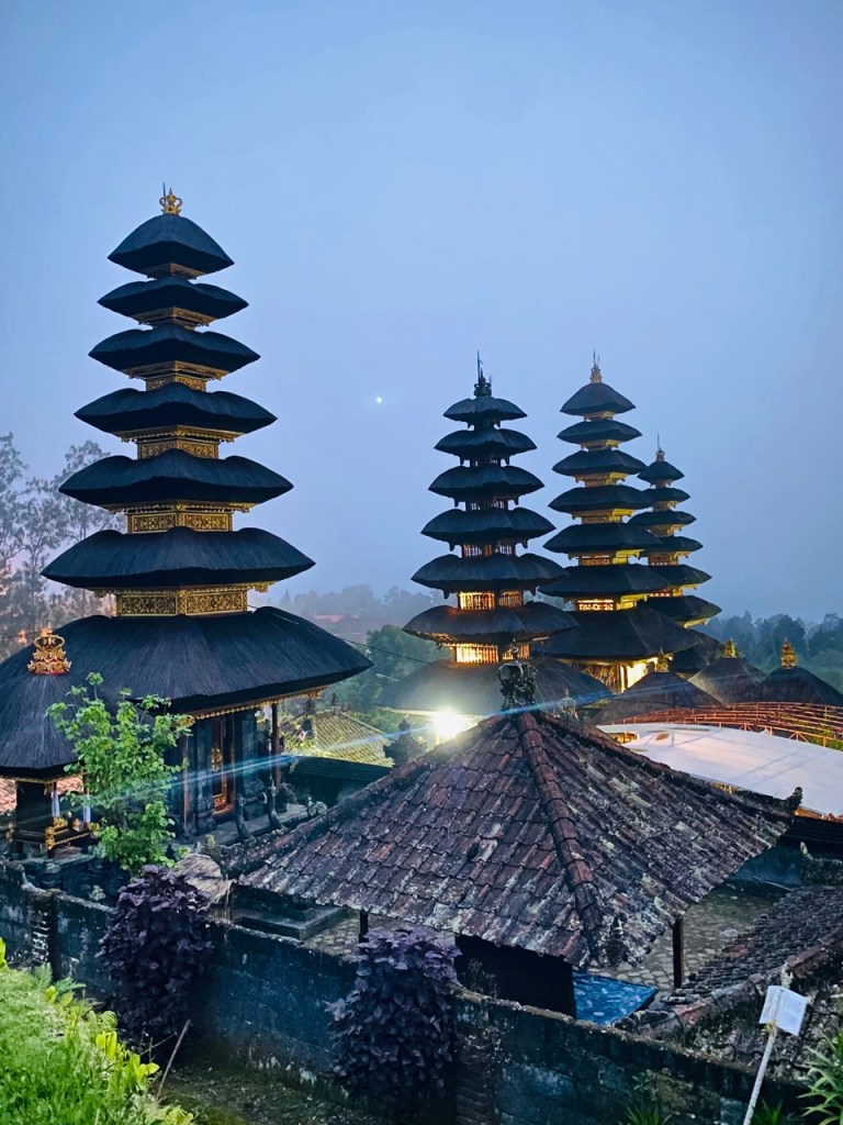 Y para culminar el día, ya anocheciendo visitamos el Templo Besakih (Pura Besakih). Es el complejo religioso más grande, importante y sagrado de toda Bali. Se le conoce como el «Templo Madre» y es que este conjunto está formado por más de 80 templos individuales distribuidos en terrazas que ascienden por la montaña, siendo el más destacado el Pura Penataran Agung.