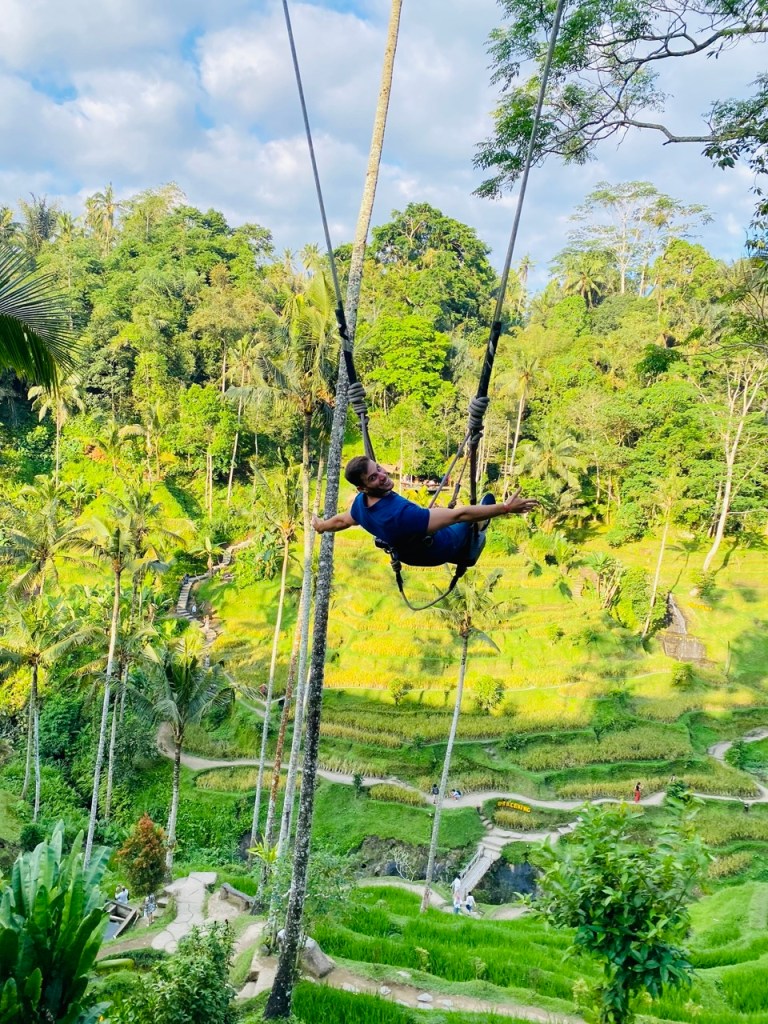 Después de pasar varias horas en el templo fuimos a visitar las terrazas de arroz de Tegallalang. Estas terrazas de arroz a pesar de ser bonitas nos parecieron un parque temático. Aquí es donde están los famosos columpios para hacerte la foto e incluso se pueden alquilar vestidos largos para que luzca más la foto. A pesar de no estar mal, no son unas terrazas de arroz auténticas, como sí vimos en días posteriores, sino algo más para turistas y para instagramear. También cuenta con un par de restaurantes y cafeterías donde tomar algo con bonitas vistas.