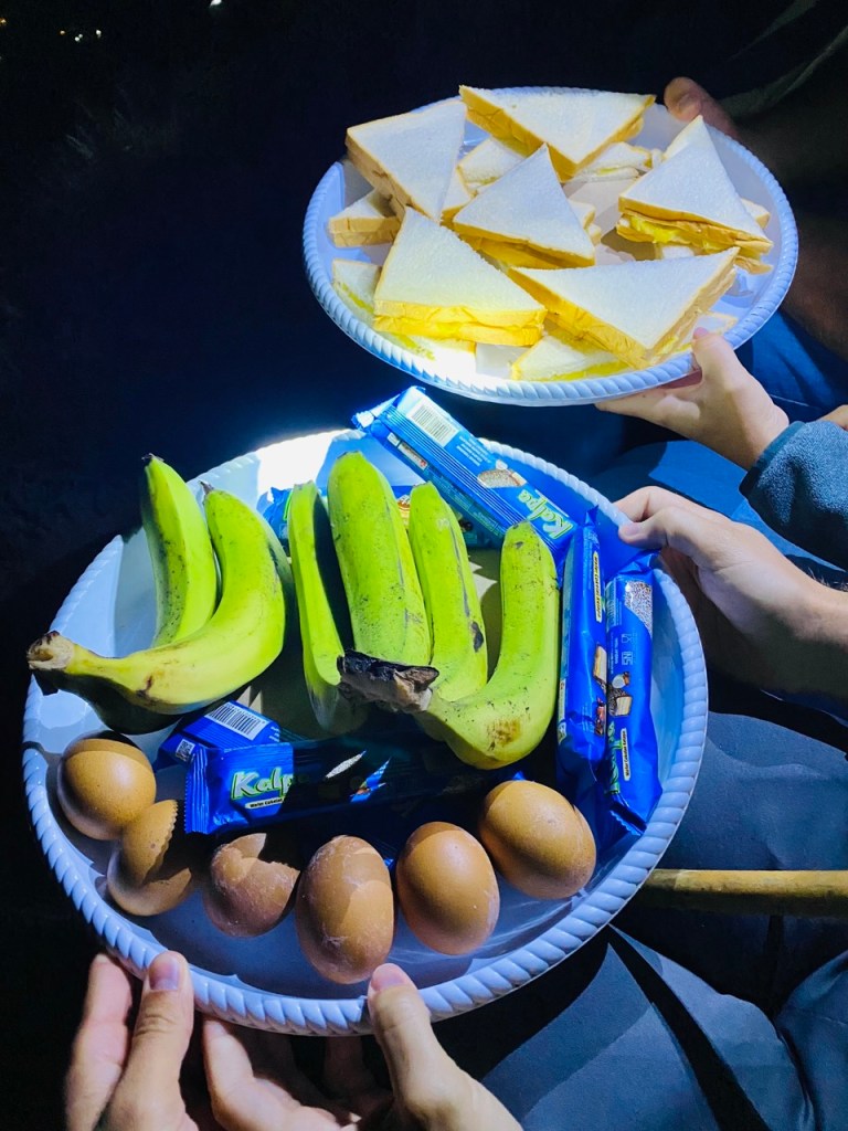 Justo antes de llegar al cráter, parada técnica para desayunar (incluido en la excursión) donde te dan un sandwich, fruta, huevo duro, chocolate y una bebida a elegir entre té, café o chocolate caliente. Muy reconfortante después de la subida, eso sí, llevaros ropa de abrigo que la temperatura allí estaba en torno a unos 11-12 grados.