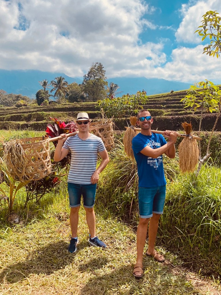 Nuestro segundo día comenzó poniendo rumbo a uno de los templos más conocidos de Bali. No obstante por el camino quisimos parar en un campo de arroz para hacer unas fotos y la familia nos vio y amablemente nos invitó a pasar. Nos enseñaron su plantación y su proceso de producción de arroz de la mano del hijo mediano de la familia que hablaba un inglés muy aceptable. Nos gustó mucho la experiencia porque fue super auténtica, la familia fue adorable y no quisieron nada a cambio.