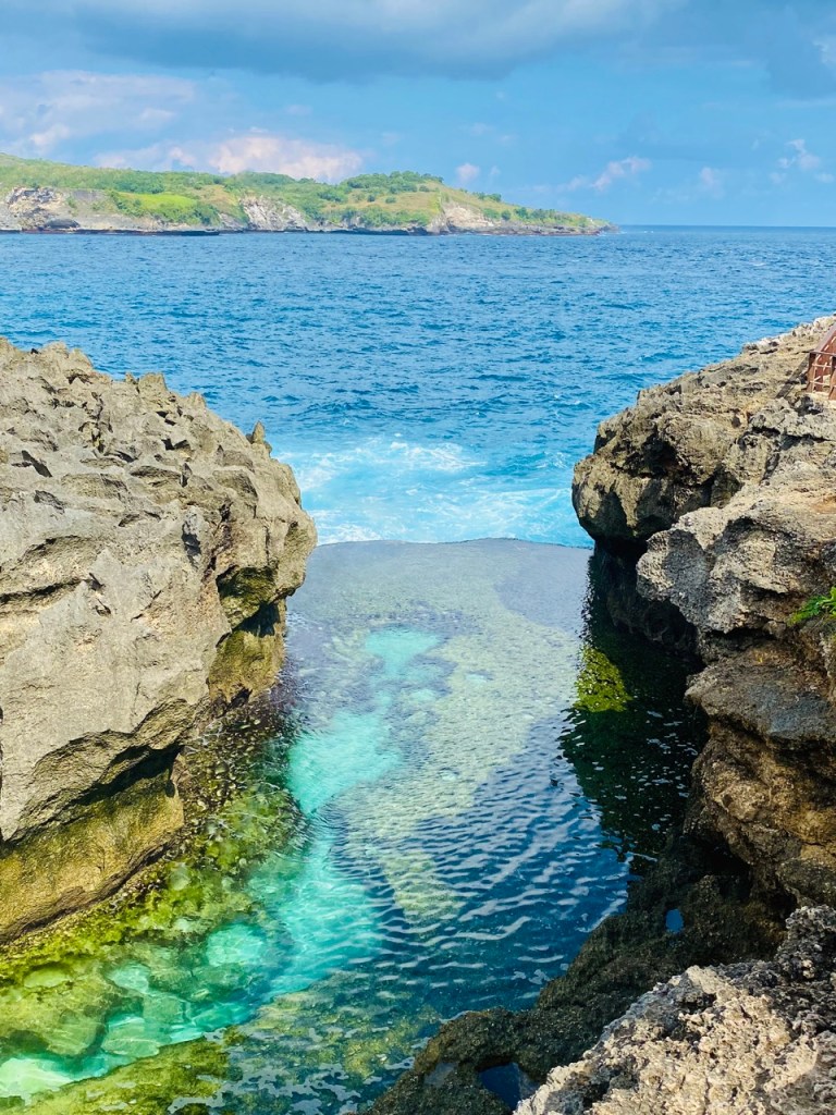 Esta isla ha ganado popularidad gracias a lugares icónicos como Kelingking Beach (con su acantilado en forma de T-Rex), Angel’s Billabong, Broken Beach o Crystal Bay, ideal para el snorkel.