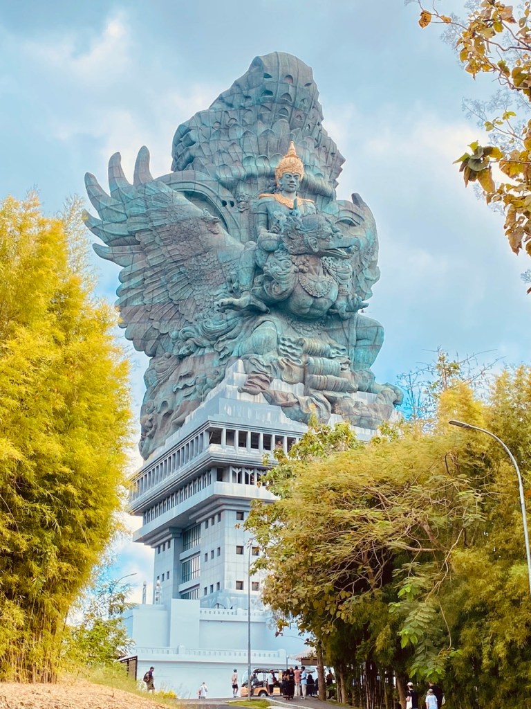 El octavo día lo quisimos aprovechar a tope y comenzamos con la visita al Garuda Wisnu Kencana Cultural Park. Es un extenso parque cultural dedicado a la mitología hindú y la cultura balinesa. Su punto central es la colosal estatua de Garuda Wisnu Kencana, que representa al dios Vishnu montado sobre el mítico pájaro Garuda y que mide 121 metros.