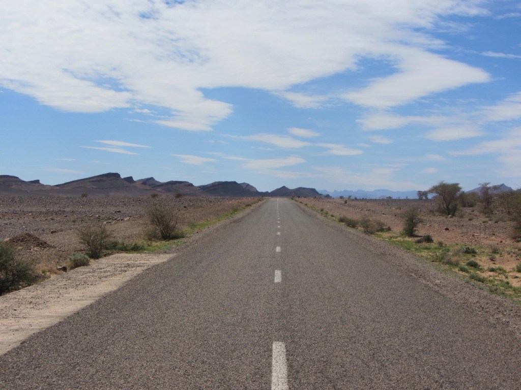 A la mañana siguiente madrugamos mucho para llegar hasta Merzouga a buena hora, salimos como a las 6.30 AM de Ouarzazate en un viaje de aproximadamente 5 horas y cuarto (unos 370 km). Es muy importante salir con comida para poder almorzar por el camino en el caso de que no encuentres nada y sobre todo salir con el tanque de combustible lleno ya que hay una gran distancia y la verdad que las gasolineras por esta zona no abundan. A medida que vayáis recorriendo la carretera nacional N-10 y N-12 hacia Merzouga veréis como el camino se vuelve cada vez más y más desértico.