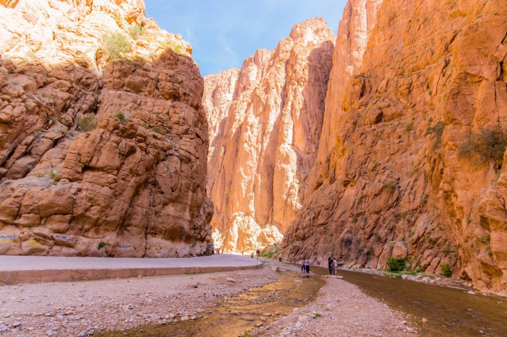 Nosotros debido al tiempo del que disponíamos decidimos elegir la garganta del Todra. Se trata de unos espectaculares cañones rocosos algunos de los cuales tienen más de 100 metros de alto y tan sólo 35 metros de ancho. El acceso a esta garganta ofrece unas vistas preciosas y es un destino muy reconocido para los profesionales de la escalada.
