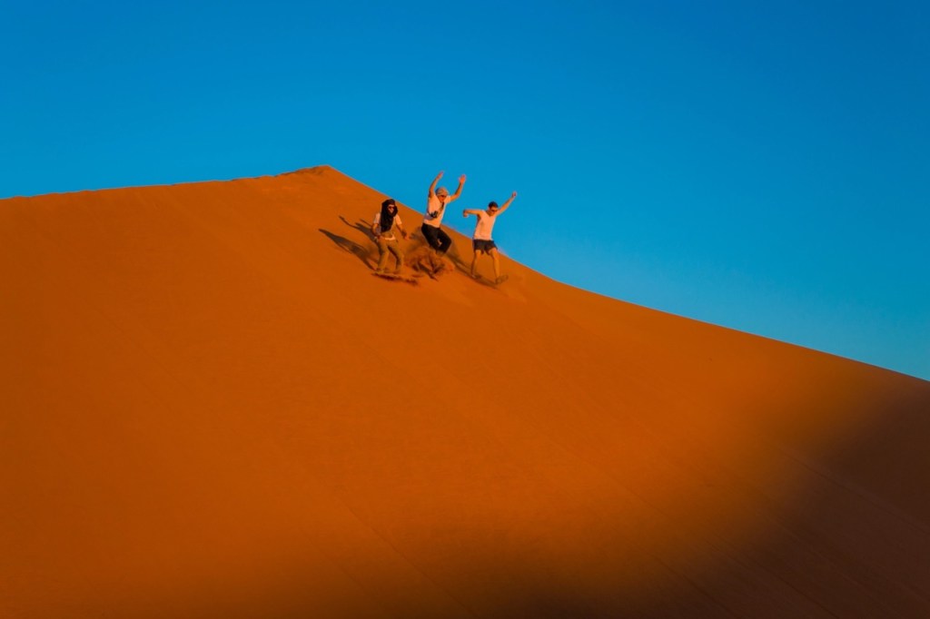 Mientras los guías van preparando la cena y las habitaciones os darán tiempo libre para que disfrutéis de este increíble lugar. Una experiencia mágica, nosotros lo pasamos como niños, subiendo y tirándonos por las dunas, aprovechando los últimos rayos de sol.