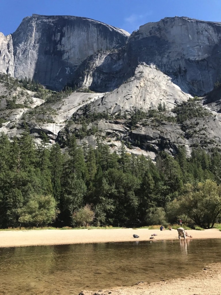 Traducido como el lago espejo, es otra de las zonas interesantes para visitar en Yosemite. Es un pequeño valle en el que hay un lago (estacional) en el que se ven reflejadas las montañas y la vegetación del parque. Es importante tener en cuenta que si vais en verano como fue nuestro caso, lago hay más bien poco y aunque a nosotros nos gustó la zona, la mejor época para verlo en su máximo esplendor es en primavera o invierno.