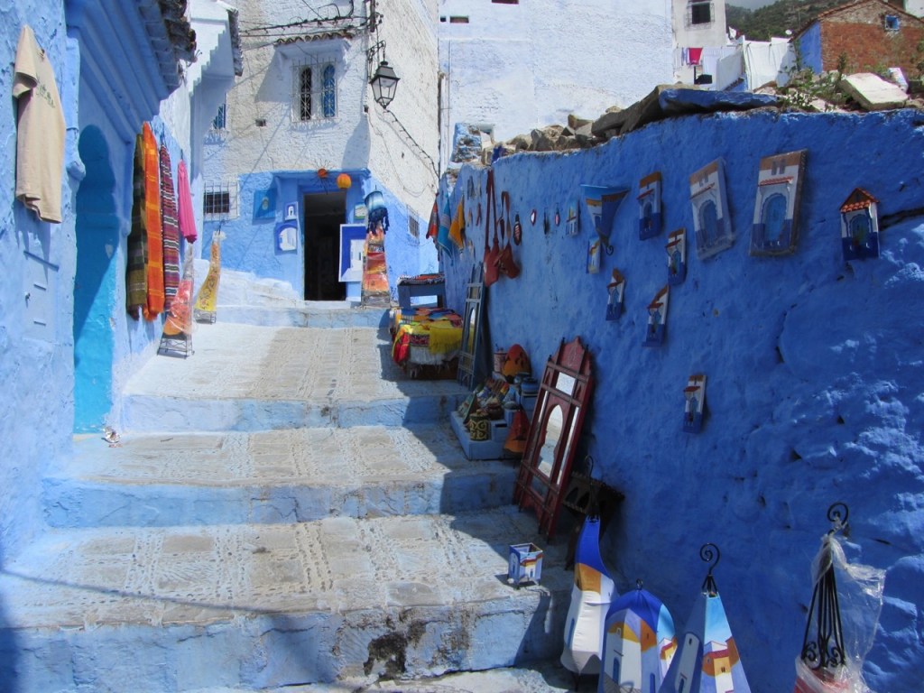 Otra de las visitas imprescindibles si viajas por el norte de Marruecos es el pueblo de Chefchaouen, situado a unos 140 km al sur de Tánger, en las montañas del Rif. Este pueblo es conocido por sus tonalidades añiles del casco antiguo, que recorren su Medina con callejuelas empedradas repletas de comercios. Para llegar hasta aquí podéis acordar un precio con algún taxista local o bien reservar una excursión privada con guía incluido.