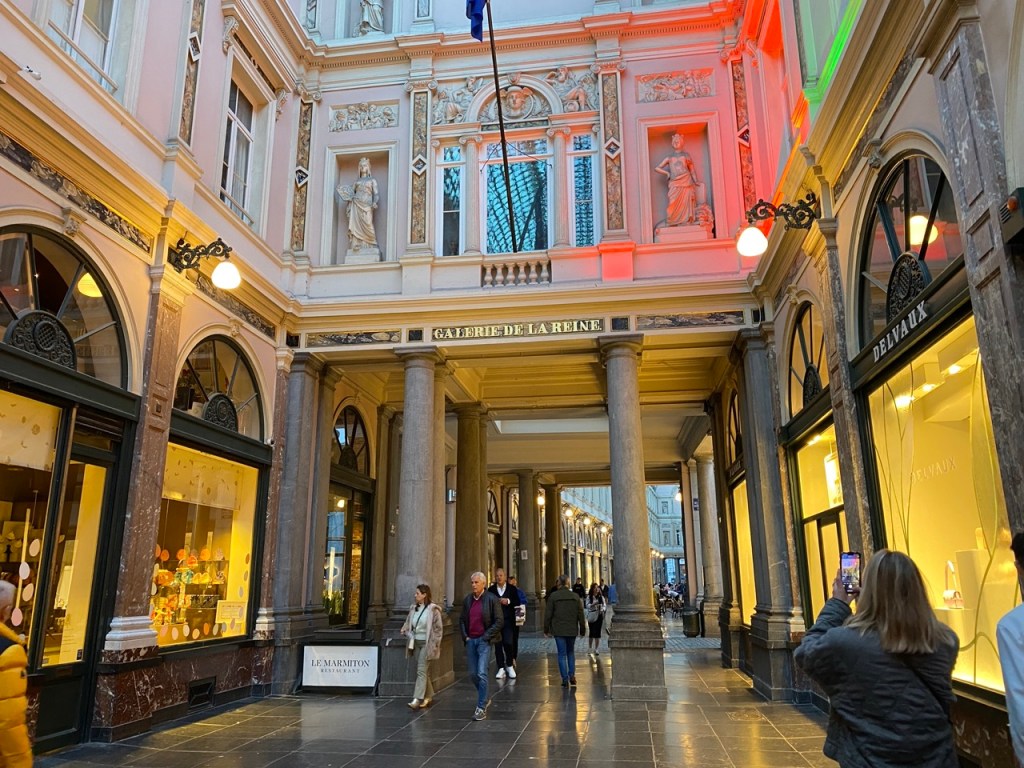 Bajo su techo de vidrio abovedado encontraréis boutiques de lujo, librerías históricas, tiendas de chocolate artesano y cafeterías con encanto. Es un lugar ideal para tomar un café, comprar bombones en Neuhaus (la marca que inventó el praliné belga), o simplemente disfrutar del ambiente elegante mientras paseas. Las galerías están divididas en tres partes: la Galería del Rey, la Galería de la Reina y la Galería de los Príncipes, y conectan la Grand Place con la Rue des Bouchers, una animada calle llena de restaurantes. Sin duda es un rincón con historia, belleza y sabor, perfecto para hacer una pausa con estilo en vuestro recorrido por Bruselas.