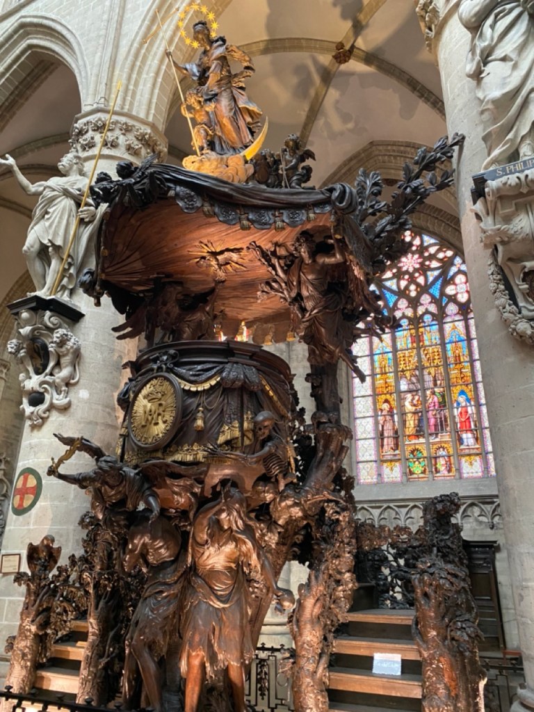 Desde fuera, impresionan sus torres gemelas de 64 metros de altura, que recuerdan a Notre-Dame de París. En el interior, la catedral combina sobriedad y grandeza: vitrales del siglo XVI, un órgano monumental y un púlpito barroco tallado en madera que es una verdadera obra de arte y que sin duda nos fascinó.