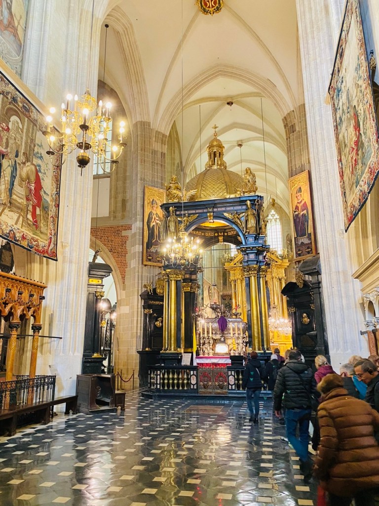 En la misma colina Wawel y muy cerca del Castillo se encuentra la Catedral de Cracovia. Es el templo religioso más importante de la ciudad y uno de los más importantes de Polonia. En su interior podéis visitar entre otros lugares la campana de Segismundo, la capilla renacentista y la cripta donde reposan los restos de personajes ilustres. En el exterior justo enfrente de la entrada principal hay una escultura dedicada al papa Juan Pablo II.