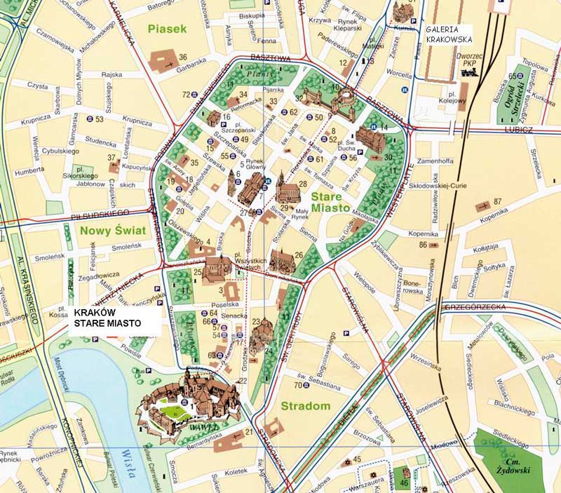Una preciosa ciudad medieval atravesada por el río Vístula, que os irá sorprendiendo a medida que os adentréis en su casco histórico rodeado por el famoso parque Planty que en su día fueron las antiguas murallas de la ciudad en la época medieval.
